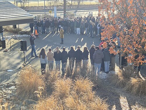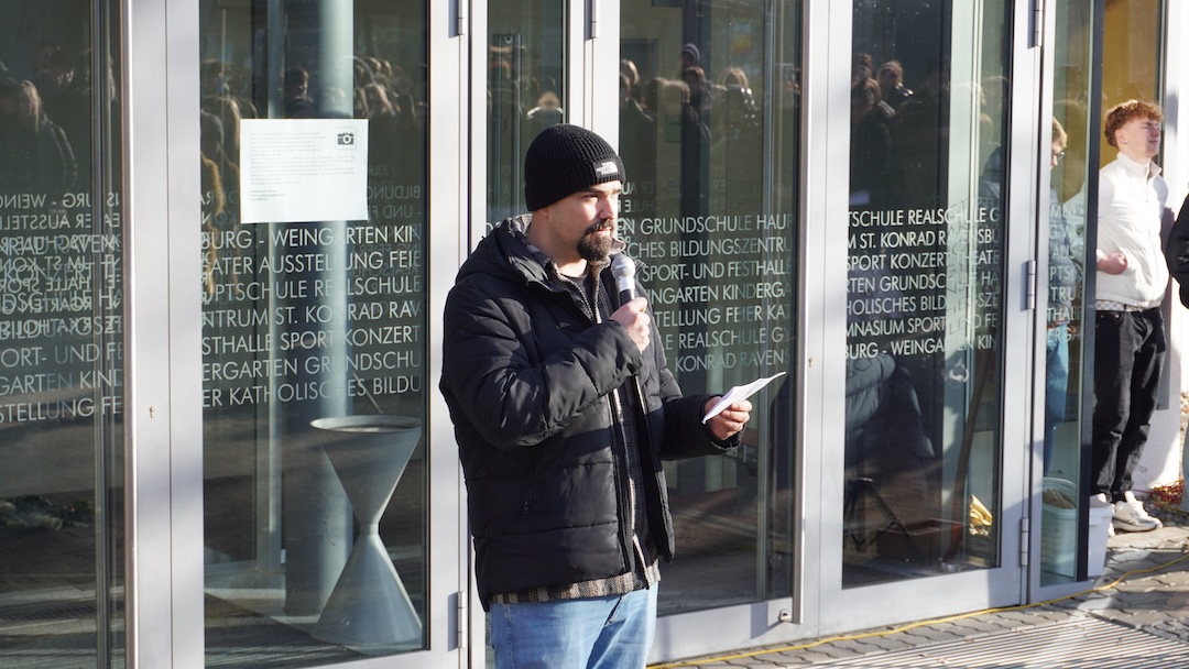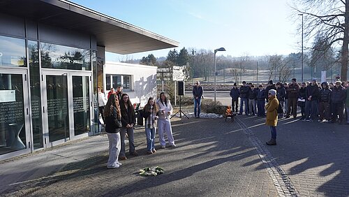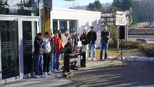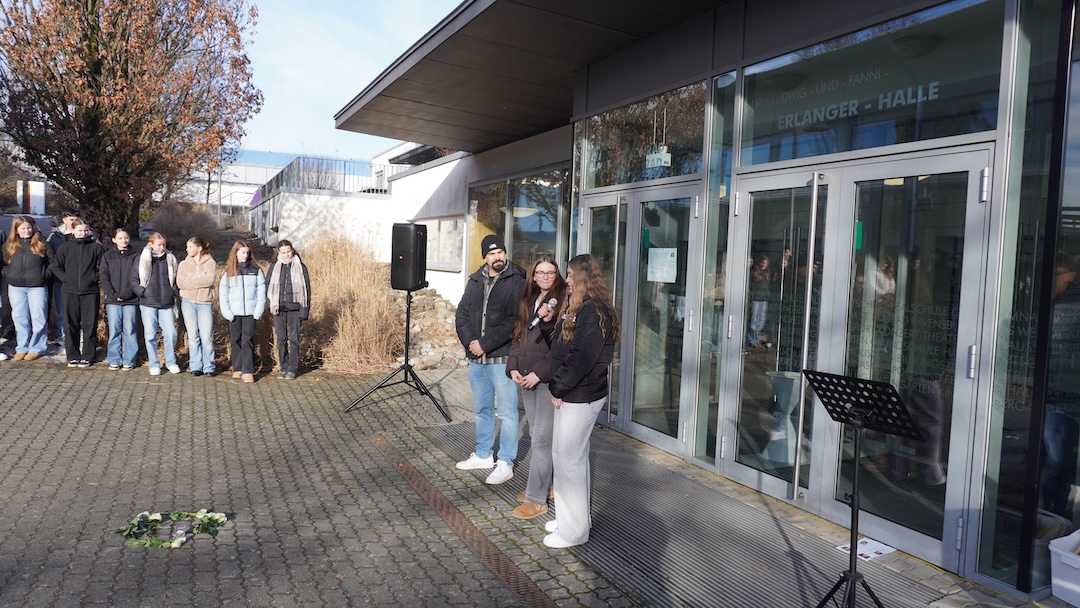 Im Rahmen des Tages des Gedenkens an die Opfer des Nationalsozialismus fand heute am Bildungszentrum St. Konrad eine Gedenkfeier zu Ehren der jüdischen Familie Erlanger statt. Vorbereitet und durchgeführt wurde die Feier von der Klassenstufe 9 der Werkrealschule unter Federführung von Michael Gauder und Werner Schnierer.