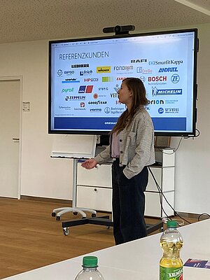 In einer Einführungsveranstaltung informierte Frau Epple und eine Studentin des dualen Studiums über die Gründung der Firma im Jahr 1951, über die Joint Venture-Firmen, und die Kooperationen zu den Themen Luftfracht, Seefracht und LKW-Transporte.