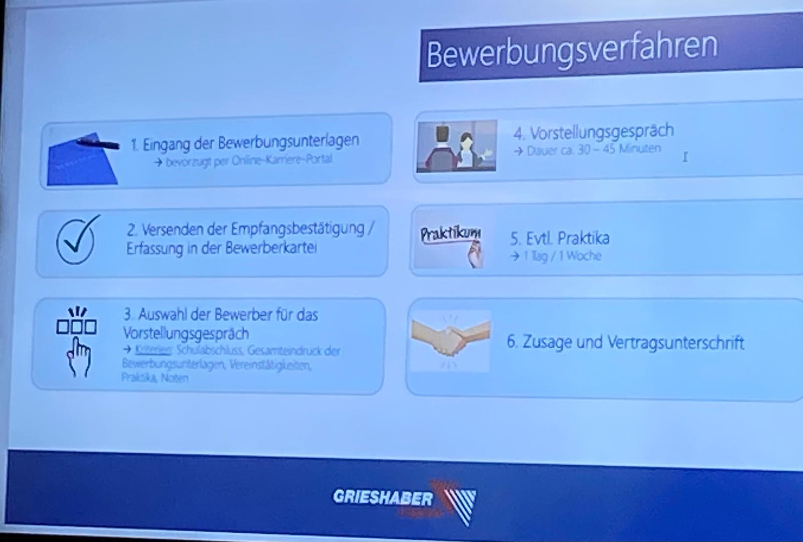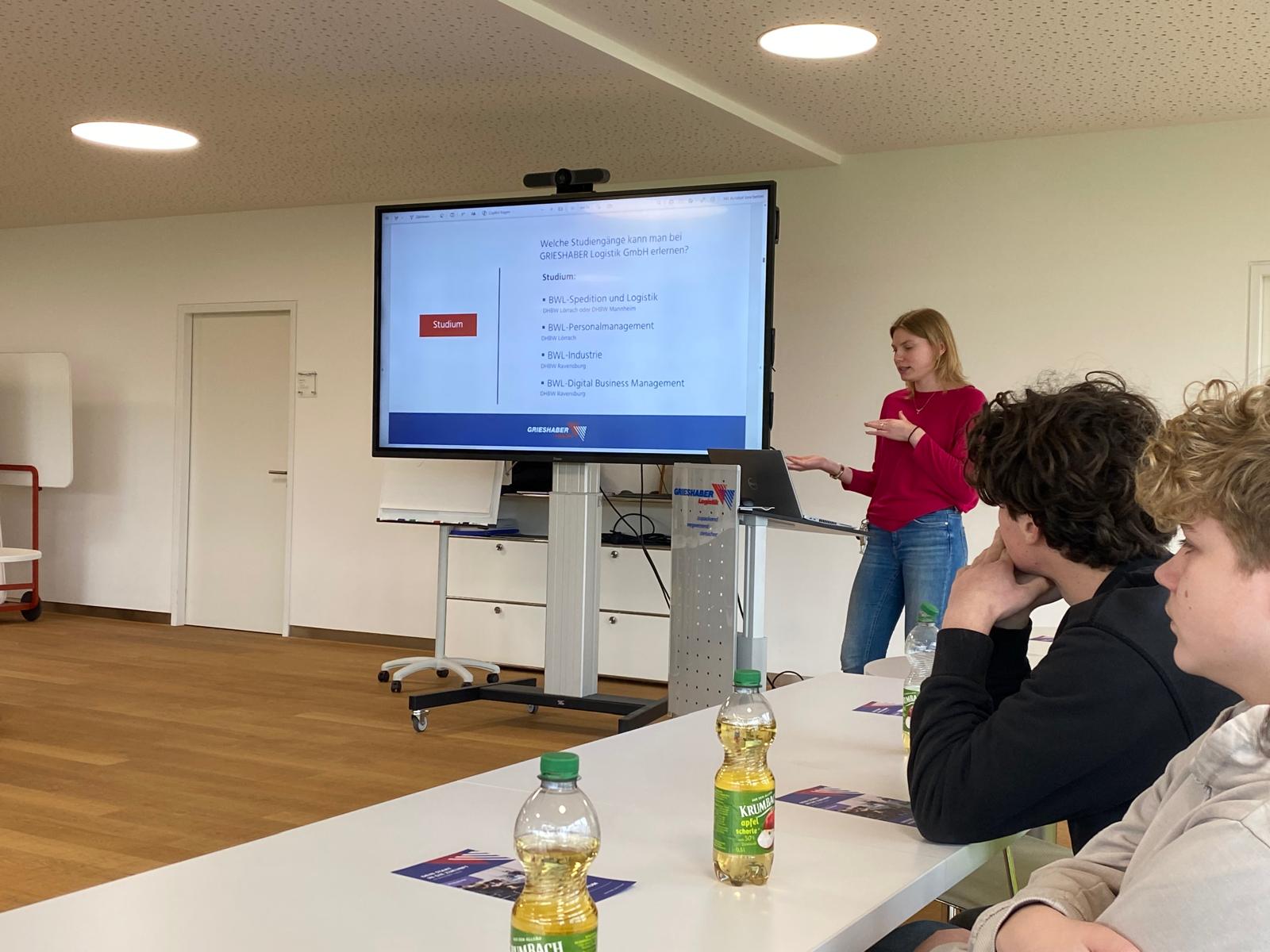 Insgesamt 22 Schüler*innen der Werkrealschule nahmen an einer Berufsfelderkundung bei Firma Grieshaber teil. Frau Epple, Personalreferentin und Ausbildungsleiterin, bot uns einen rundum gelungenen Einblick in die Welt des Transports und der Logistik bei Grieshaber. Grieshaber ist in Weingarten an verschiedenen Standorten zu finden. Wir erhielten Einblicke in die Verwaltungs- und Lagergebäude in der Stettinerstraße, wo das Headquarter der Firma stationiert ist. Grieshaber ist auf verschiedene Standorte in Deutschland und Slowenien verteilt.