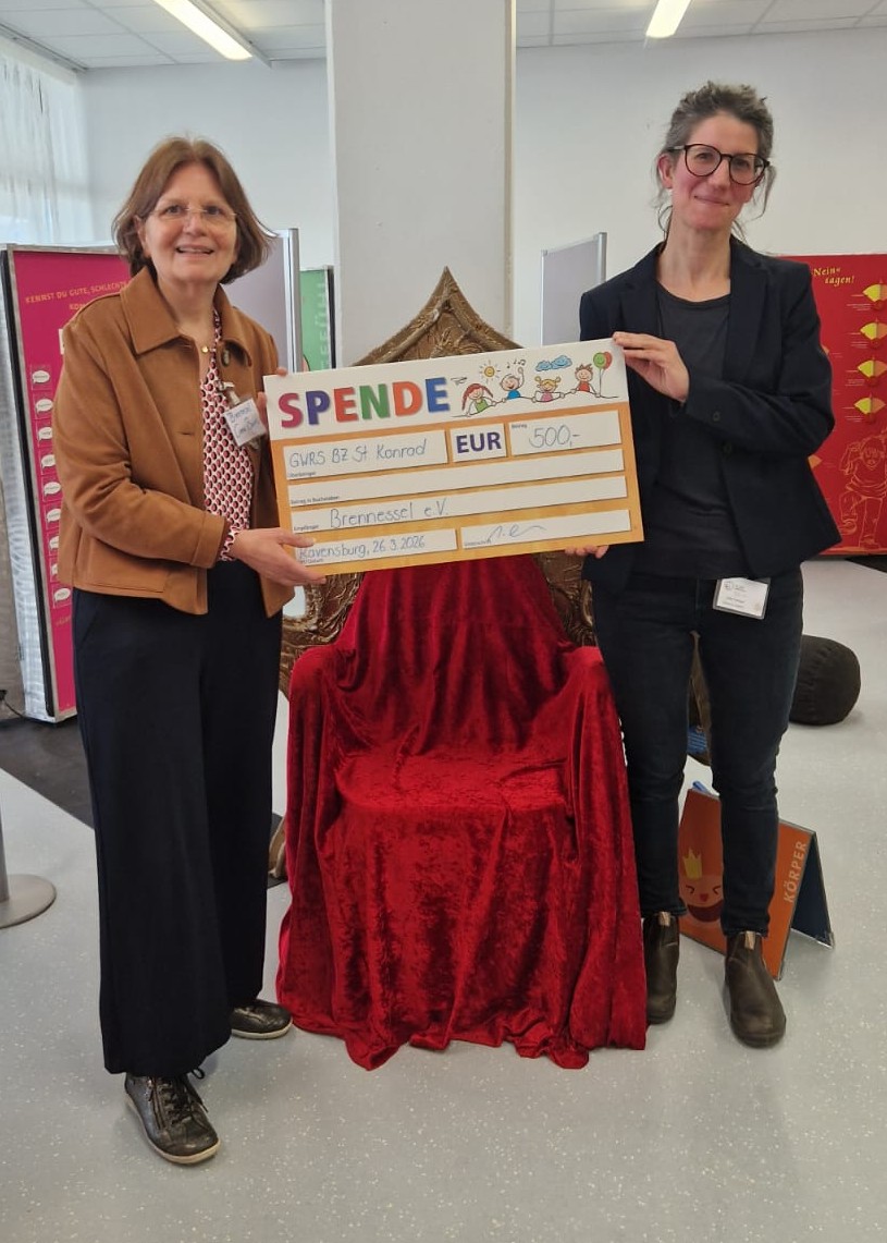 Vor den Osterferien wurde nun ein Teil des eingenommenen Geldes im Rahmen einer Scheckübergabe an den Brennessel e.V. gespendet.