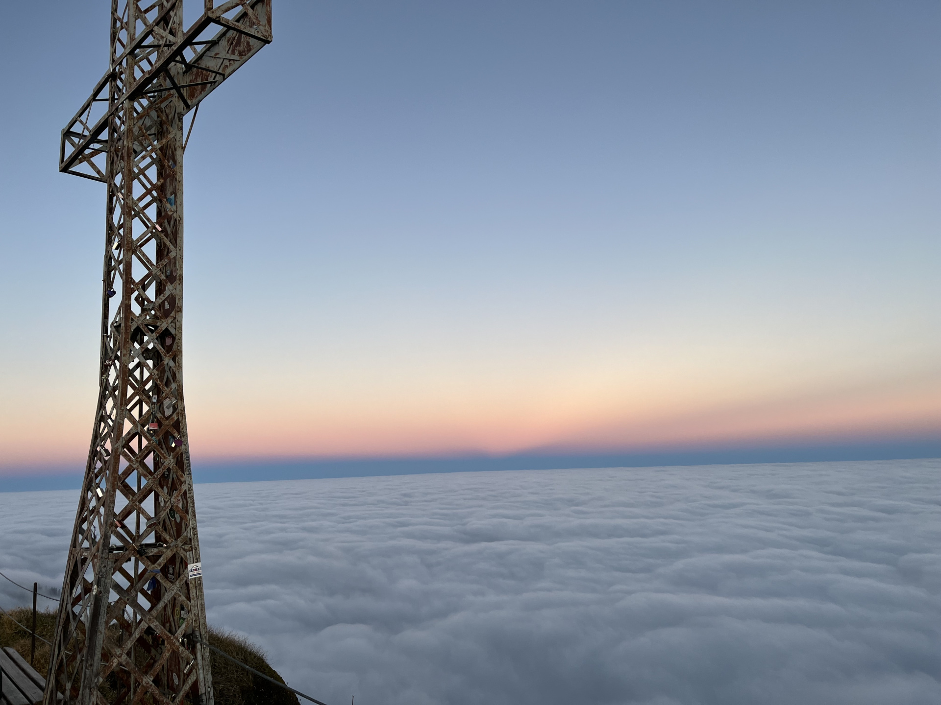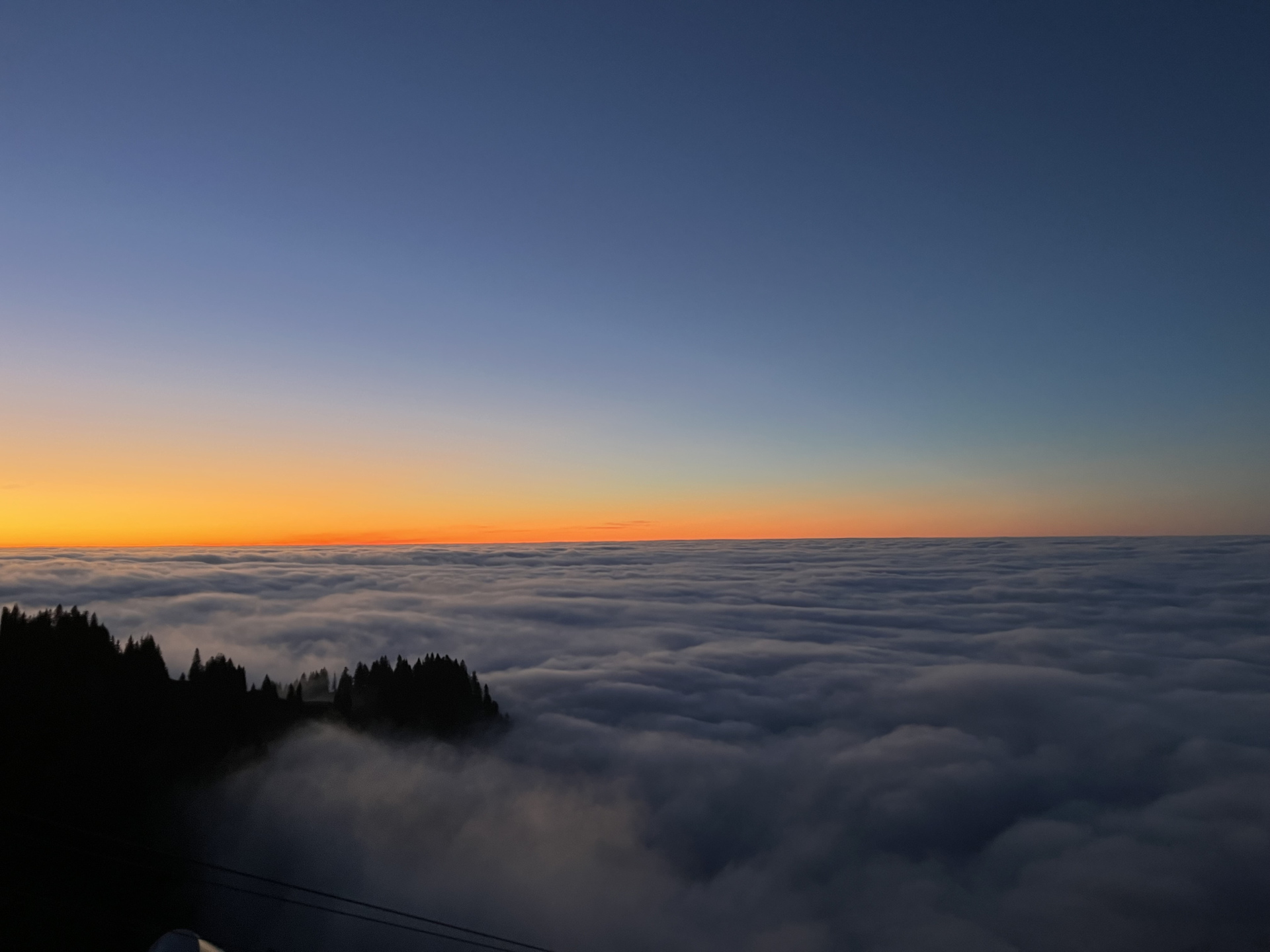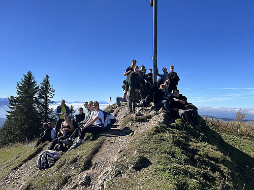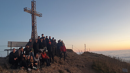Mitte Oktober machte sich die Kursstufe 1 fast vollständig mit Frau Hohmann, Herrn Mähr, Herrn Schupp und Herrn Dr. Schindler auf den Weg zum Staufner Haus am Hochgrat – 1600 Meter über dem Meeresspiegel. Die 800 Höhenmeter hatten es zwar in sich, doch die Anstrengung wurde reichlich belohnt: traumhafte Ausblicke, frische Bergluft und ein Sonnenaufgang, der für manche Frühaufsteher zum Höhepunkt der Fahrt wurde. Die Wolken lagen wie eine weiche Decke über den Tälern, nur die Gipfel ragten hinaus – ein unvergessliches Erlebnis.
