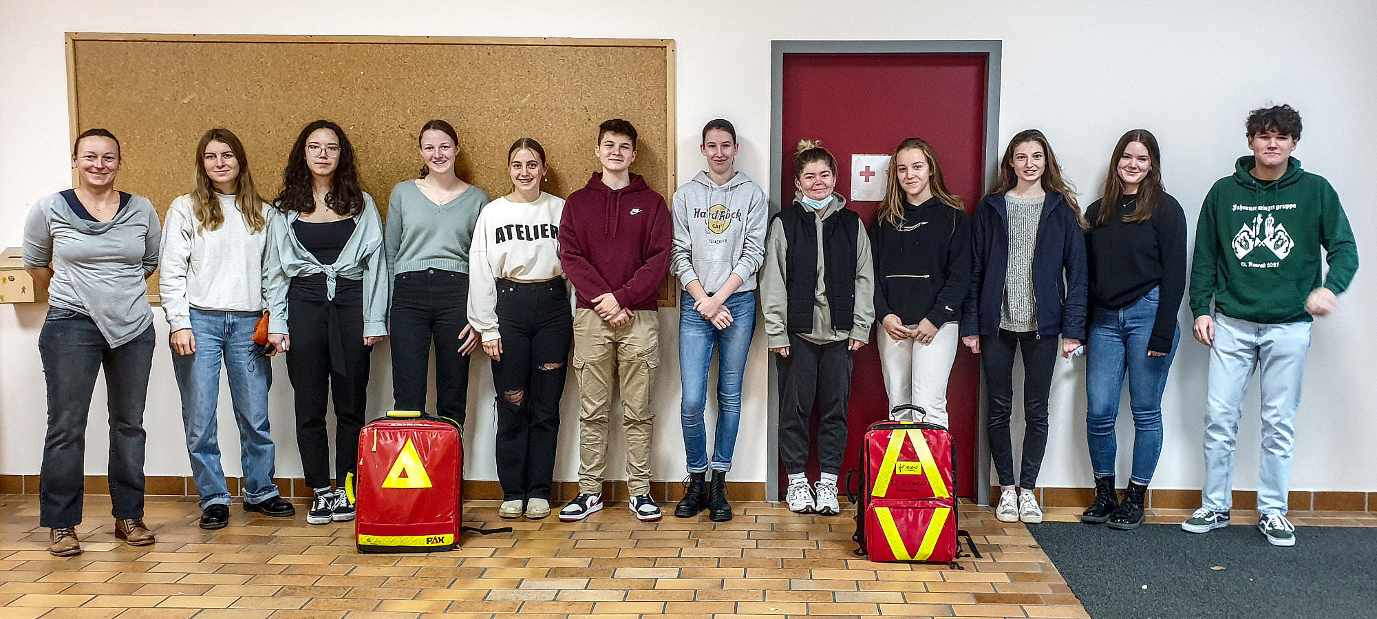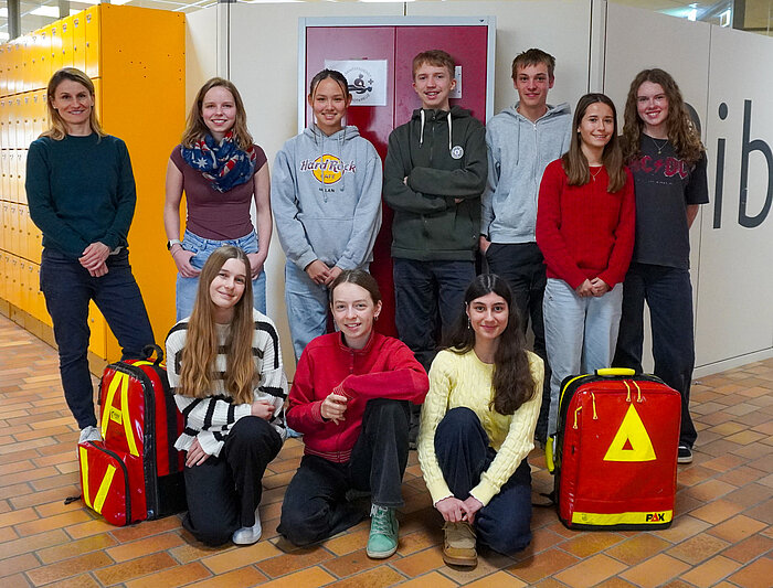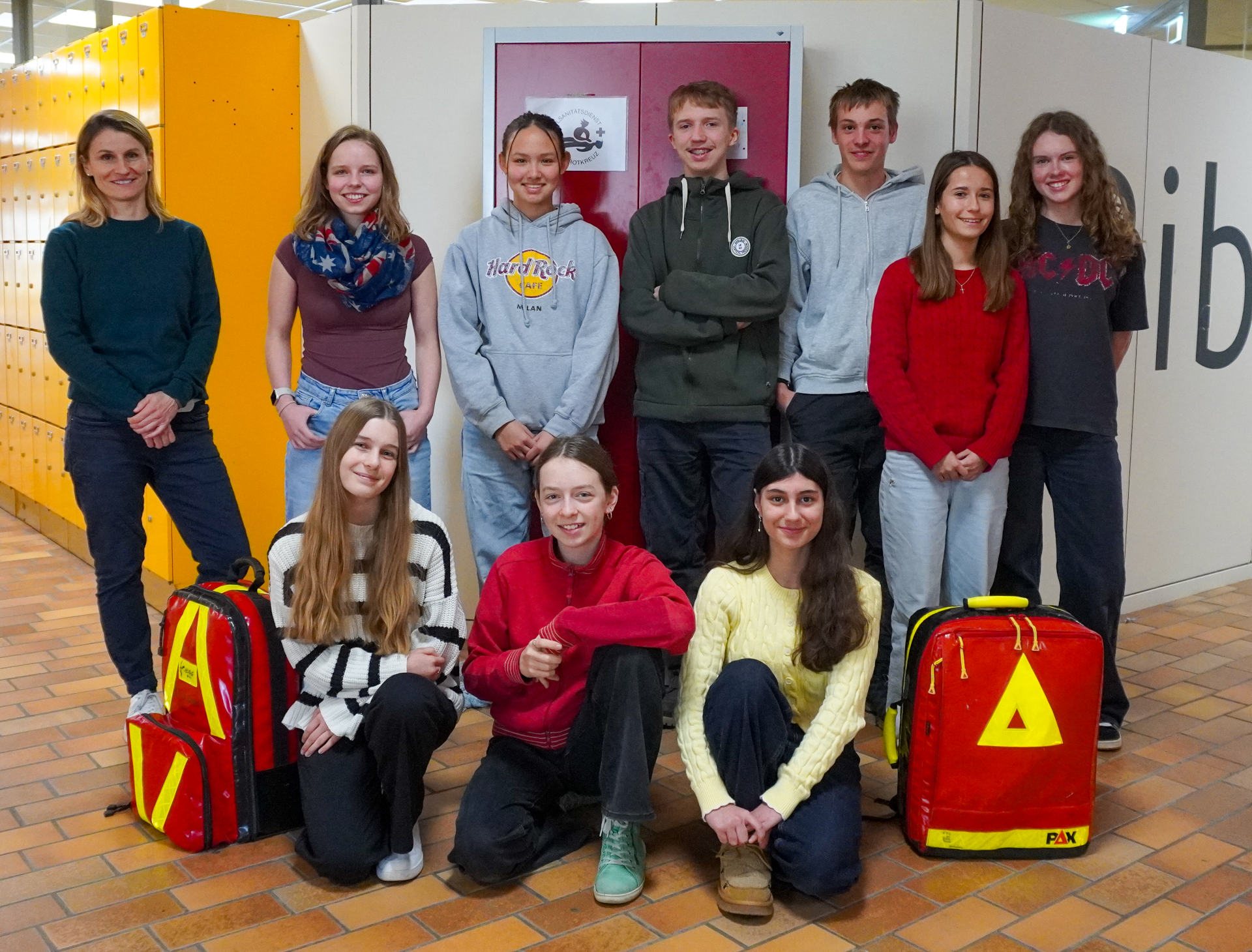 Teamfähigkeit, Rücksichtnahme, Hilfsbereitschaft und das Übernehmen von Verantwortung – all das erlernen unsere Schulsanitäterinnen und Schulsanitäter durch ihren Einsatz und Engagement: Sie sorgen im schulischen Alltag, bei Schul- und Sportfesten oder bei Ausflügen für Sicherheit und leisten in Notsituationen schnelle erste Hilfe. Sie wissen, wie man einen Patienten beruhigt, wie man einen Verband anlegt, einen ausgebrochenen Zahn versorgt oder wie man die stabile Seitenlage durchführt. All diese Fähigkeiten machen unsere „Schulsanis“ auch zu guten Ansprechpartnerinnen und Ansprechpartnern für ihre Mitschülerinnen und Mitschüler. Organisatorin für den Schulsanitätsdienst ist seit dem Schuljahr 2025/2026 Frau Maria Stephan.