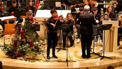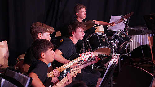 Seit dem Schuljahr 2019/2020 können die Schülerinnen und Schüler im Gymnasium St. Konrad einen neuen Weg beschreiten. Neben dem naturwissenschaftlichen Zug und der sprachlichen Ausrichtung kann nun von Klasse 8 bis Klasse 10 auch Musik als Hauptfach gewählt werden. In den vier Unterrichtsstunden pro Woche haben die jungen Musikerinnen und Musiker Zeit, sich intensiver mit dem Musizieren, aber auch dem Hintergrund von Musik zu beschäftigen.