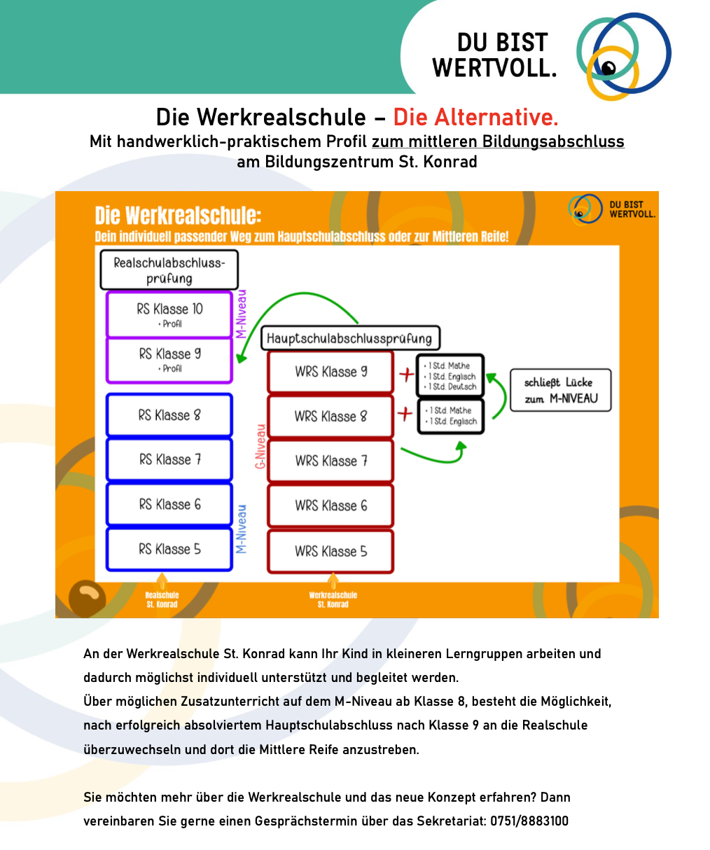 Ausführliche Einblicke und Informationen über die Realschule St. Konrad erhalten Sie auch hier.